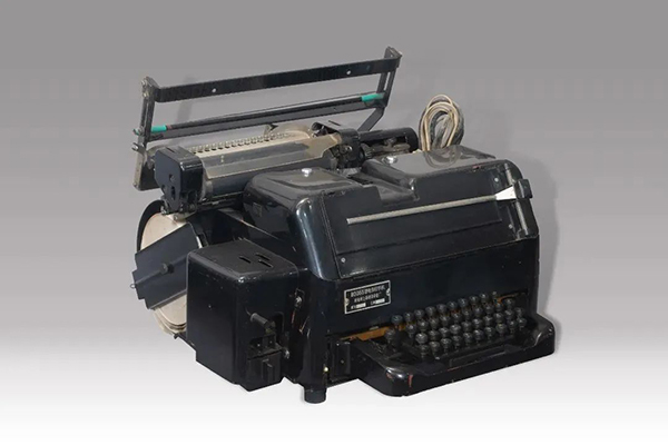 這款電傳打字機由上海華東郵電器材廠研制生產(chǎn),橫寬51.4厘米,縱長54厘米, 高31.4厘米,組成零件比組成一輛解放牌卡車的零件個數(shù)還要多。
