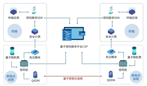 該方案創(chuàng)造性地將量子密鑰分發(fā)技術(shù)和量子真隨機數(shù)生成技術(shù)等量子安全技術(shù),與經(jīng)典密碼技術(shù)相結(jié)合,通過集群化部署融入量子能力的密碼產(chǎn)品,為業(yè)務(wù)系統(tǒng)提供了更靈活和更安全的密碼服務(wù)。