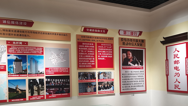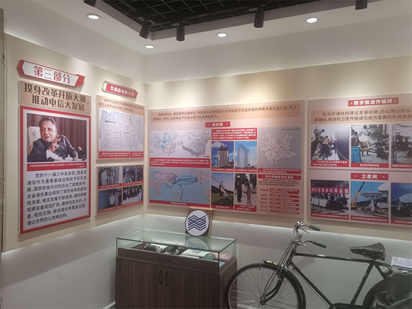 原“百年電信”展廳,占地160平方米,記錄了自中國共產黨成立以來,紅色電信伴隨中國革命的發(fā)展而發(fā)展,體現了中國電信繼承了黨和人民軍隊的紅色基因,鐫刻著“人民郵電為人民”的優(yōu)良傳統(tǒng),在土地革命、抗日戰(zhàn)爭、解放戰(zhàn)爭、建設新中國、改革開放、中國特色社會主義建設發(fā)揮重要作用。2022年6月再次升級,開設以“喜迎黨的二十大勝利召開”為主題的“云南電信這十年”成就展。