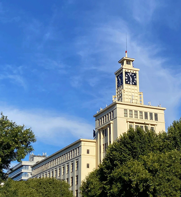 西安報話大樓,坐落于西安市中心北大街西華門十字東南角的繁華地帶,始建于1958年,總建筑面積達2萬平方米。該建筑由Ⅰ段塔樓及Ⅱ段、Ⅲ段輔樓和東南兩翼三部分構成,其中Ⅰ段主體為8層短、微波系統(tǒng),頂層矗立著一座5層方形塔樓,總高達62.5米,四面鑲嵌時鐘,每小時準時報時并播放《東方紅》樂曲,外墻統(tǒng)一采用米白色調,彰顯出莊重而高雅的氣質。