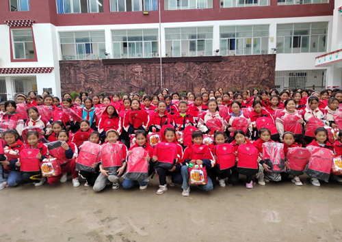 中國電信在定點幫扶的四川木里縣舉行“春蕾女童健康包”發(fā)包儀式。