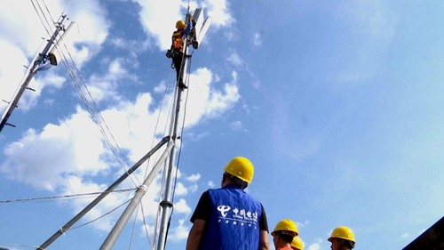 中國電信裝維工程師在安裝智慧監(jiān)控設(shè)備、維護基站。