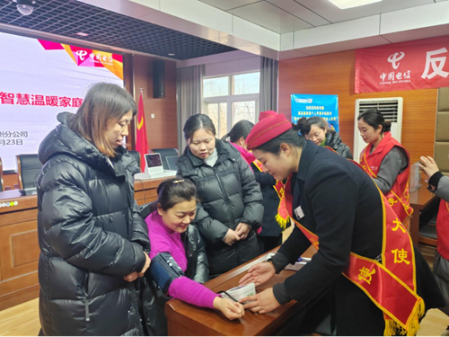 2024年1月23日,江蘇徐州電信青年團(tuán)員來(lái)到中陽(yáng)里街道古豐社區(qū),開(kāi)展“文明點(diǎn)亮城市、青春志愿同行”主題志愿服務(wù)活動(dòng)。廣大團(tuán)員開(kāi)展組織反詐專題講座,義務(wù)測(cè)量血壓、發(fā)放暖心飲品、宣講文明創(chuàng)建知識(shí)并發(fā)放春聯(lián),與市民共享冬日里的志愿服務(wù)暖陽(yáng),得到市民的一致好評(píng)。