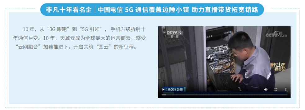 中國(guó)電信緊緊圍繞迎接黨的二十大和學(xué)習(xí)宣傳貫徹黨的二十大精神這條主線,統(tǒng)籌策劃參 與中央主流媒體迎接黨的二十大專(zhuān)題報(bào)道,央視財(cái)經(jīng)“非凡十年看名企”播 出中國(guó)電信篇,央視國(guó)際“新時(shí)代的中國(guó)”播出中國(guó)電信福建漁村5G篇, 央視紀(jì)錄片《雄安 雄安》重點(diǎn)宣傳中國(guó)電信“5G+云網(wǎng)融合”織就云上新城 的具體實(shí)踐。國(guó)務(wù)院國(guó)資委網(wǎng)站專(zhuān)欄刊發(fā)《中國(guó)電信: 牢記囑托 提供高質(zhì)量信息服務(wù) 讓人民群眾暢享美好數(shù)字新生活》,專(zhuān)題策劃“奮進(jìn)新征程 央企 這十年”宣傳,塑造了中國(guó)電信建設(shè)網(wǎng)絡(luò)強(qiáng)國(guó)和數(shù)字中國(guó)、維護(hù)網(wǎng)信安全的 主力軍形象。聚焦科技創(chuàng)新三年行動(dòng)計(jì)劃, 開(kāi)展“科技型企業(yè)”主題宣傳, 黨組書(shū)記、董事長(zhǎng)柯瑞文在《國(guó)資報(bào)告》發(fā)表署名文章《加快建設(shè)科技型企業(yè)》。聯(lián)合國(guó)務(wù)院國(guó)資委、人民日?qǐng)?bào)和中國(guó)新聞網(wǎng)策劃“我們這十年@坐標(biāo) 中國(guó)”“中國(guó)速度· 神機(jī)妙算”。中國(guó)電信在國(guó)務(wù)院國(guó)資委新聞中心公布的 2022年度“中國(guó)企業(yè)新媒體指數(shù)榜”和“中央企業(yè)新媒體指數(shù)榜”均位列第 一。中國(guó)電信官方微博獲中央網(wǎng)信辦2022年“走好網(wǎng)上群眾路線百個(gè)成績(jī)突 出賬號(hào)”,新聞作品在第五屆中央企業(yè)優(yōu)秀故事創(chuàng)作展示活動(dòng)中獲得優(yōu)秀組織 獎(jiǎng)和10個(gè)作品獎(jiǎng)。在第九屆“國(guó)企好新聞”評(píng)選中,獲得5個(gè)作品獎(jiǎng)、1個(gè)新 聞創(chuàng)客提名獎(jiǎng)。