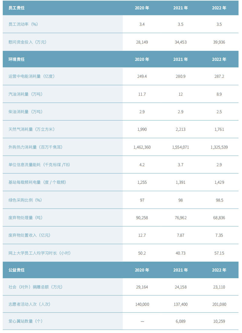 共建和諧美好社會(huì):積極適應(yīng)行業(yè)監(jiān)管新要求,嚴(yán)格遵守相關(guān)法律法規(guī),推動(dòng)行業(yè)健康、規(guī)范、有序發(fā)展。始終堅(jiān)持綠色發(fā)展理念,多管齊下打造綠色云網(wǎng),推動(dòng)綠色運(yùn)營(yíng)。提升服務(wù)能力,著力解決廣大客戶(hù)的“急難愁盼”問(wèn)題。全力推進(jìn)鄉(xiāng)村振興,將企業(yè)數(shù)字化能力優(yōu)勢(shì)轉(zhuǎn)化為幫扶優(yōu)勢(shì),不斷鞏固拓展脫貧攻堅(jiān)成果,助力鄉(xiāng)村振興。完善人才隊(duì)伍建設(shè)制度,弘揚(yáng)勞模精 神和工匠精神,關(guān)心關(guān)愛(ài)員工,保障員工權(quán)益,充分調(diào)動(dòng)員工積極性,激發(fā)員工活力。積極支持科教文衛(wèi)等社會(huì)事業(yè)的發(fā)展。廣泛參與“一帶一路”建 設(shè),積極在境外履行社會(huì)責(zé)任,助力相關(guān)國(guó)家(地區(qū))經(jīng)濟(jì)社會(huì)發(fā)展。