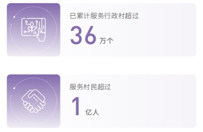 中國電信將數(shù)字鄉(xiāng)村建設(shè)作為深化行業(yè)幫扶、定點幫扶的重要舉措,打造數(shù)字賦能鄉(xiāng)村振興樣板。數(shù)字鄉(xiāng)村平臺融合視聯(lián)網(wǎng) +AI+ 天翼云播三大核心能力,面向區(qū)縣、鄉(xiāng)鎮(zhèn)、行政村等政府和村民,提供便民服務(wù)、積分銀行等信息化服務(wù),以及農(nóng)村養(yǎng)老、消防安全、智慧種植等數(shù)字化場景服務(wù),實現(xiàn)鄉(xiāng)村基層治理和農(nóng)民生產(chǎn)生活智能化,已累計服務(wù)超過 36 萬個行政村,服務(wù)村民超過 1 億人。