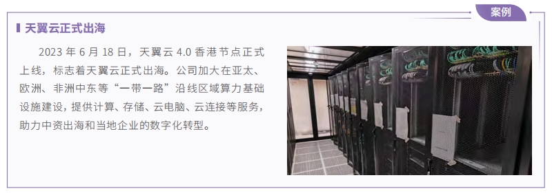 中國電信大力推進天翼云國際化,打造覆蓋全球主要熱點區(qū)域高速互聯(lián)智能云網(wǎng)體系,與全球主流公有云多節(jié)點高速互聯(lián)。憑借專業(yè)的信息服務(wù)能力和云網(wǎng)融合技術(shù)優(yōu)勢,匹配海外當?shù)財?shù)字化應(yīng)用場景,融入智慧系列方案,助力海外客戶數(shù)字化轉(zhuǎn)型升級,為當?shù)財?shù)字經(jīng)濟建設(shè)、社會進步及民生改善作出積極貢獻。