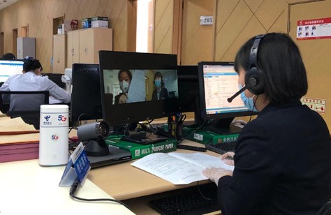 2020 年 2 月 12 日,北京市房山區(qū)政務服務中心綜合窗口工作人員使用中國電信 5G 網(wǎng)絡和全視通視頻會議,為客戶提供視頻咨詢和遠程幫辦服務