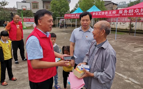 2020 年 6 月 20 日,江西省九江分公司聯(lián)合九江市第三人民醫(yī)院、九江中研京九醫(yī)院開展“攜手走進(jìn)王橋村愛心義診公益行”活動,提供免費(fèi)體檢、診療和取藥服務(wù)